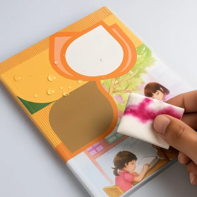 Mon livre de sciences a survécu à des fuites de jus sans tache ! La protection s’est mise rapidement. J’aime que mes pages cornées restent maintenant bien plates.
