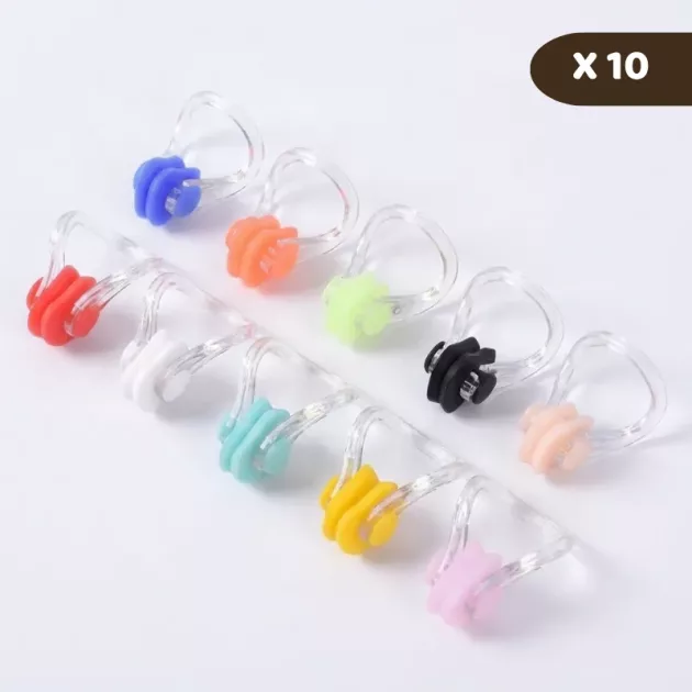 Lot de 10 pinces nasales de natation colorées pour enfants