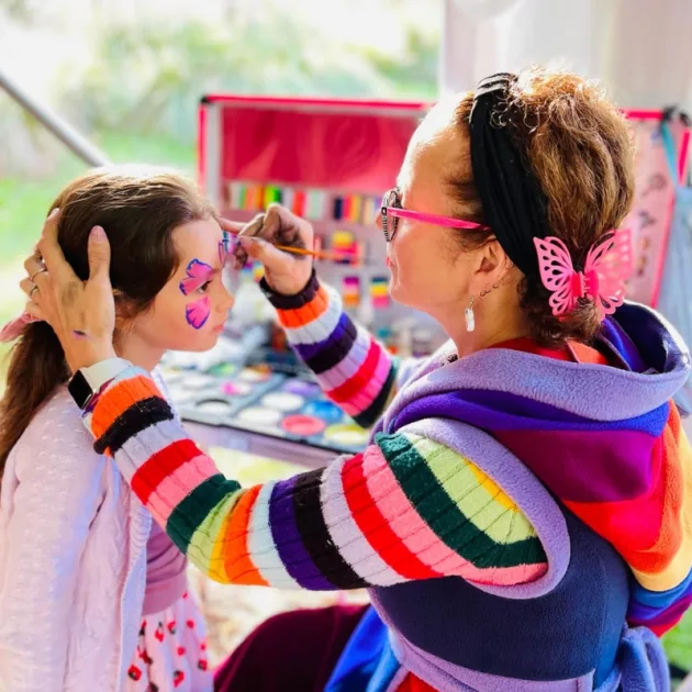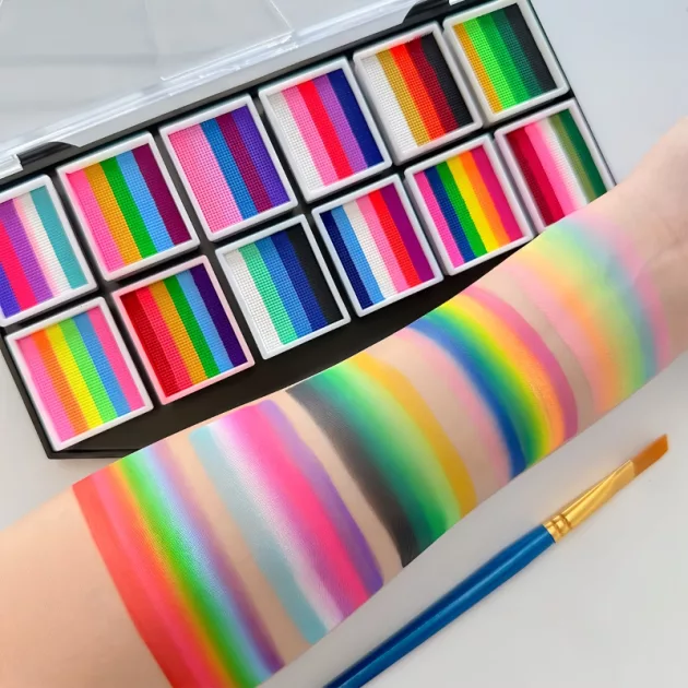 Les couleurs sont vraiment chouettes. On a fait des fleurs et des chats sur les bras et les joues. S’est enlevé facilement avec un peu d’eau – les parents ont adoré.