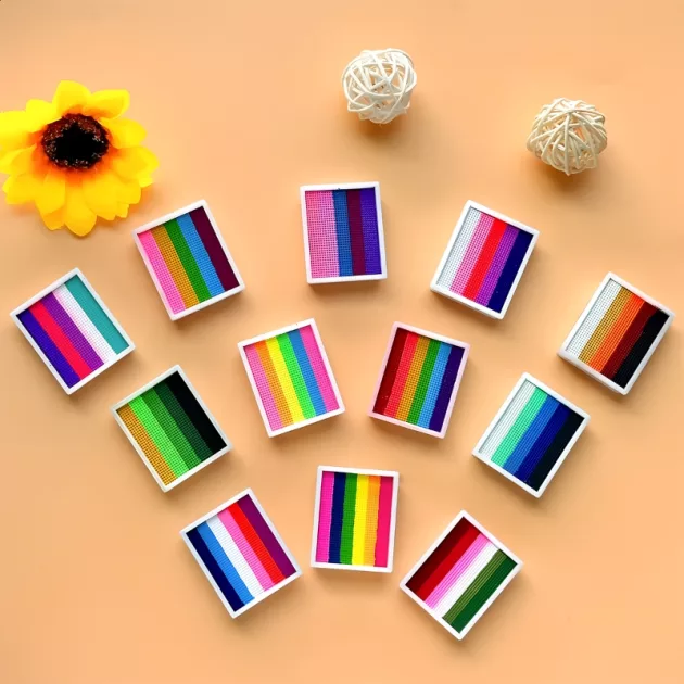 Tellement de couleurs dans une petite boîte ! Parfait pour faire semblant d’être tigres et fées. Facile à enlever avant de dormir.