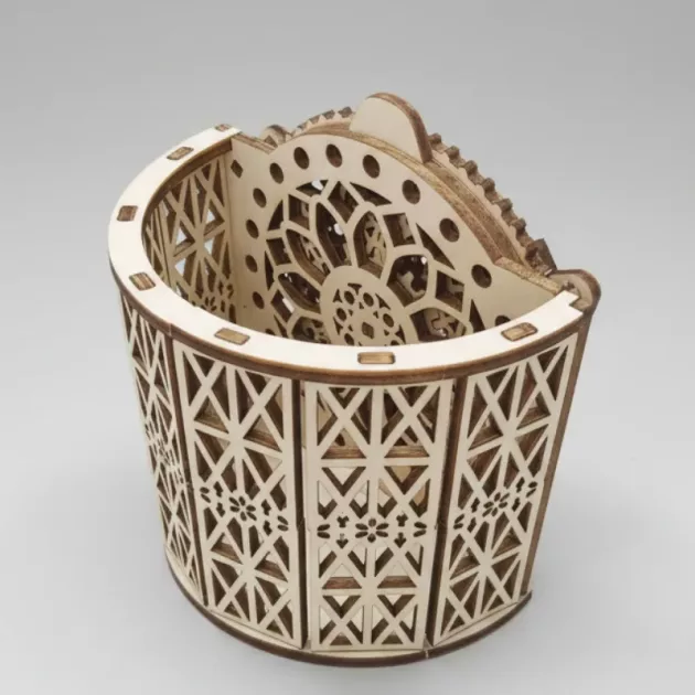 Ce kit en bois a pris du temps à monter, mais j’ai appris comment fonctionnent tous les petits engrenages. En plus, toutes mes gommes et mes post-its rentrent parfaitement.