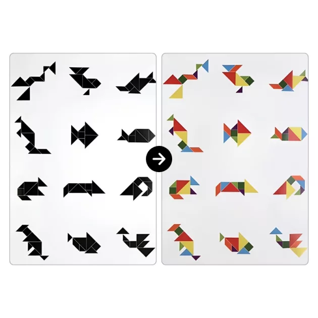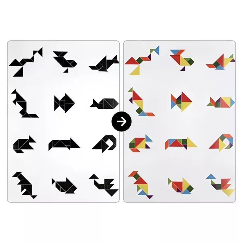 Ce jeu de tangram occupe mon frère et moi pendant des heures ! On adore mélanger les formes pour créer des animaux amusants des casse-têtes cool. C’est super amusant.