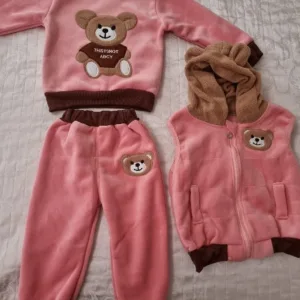 Tenue d’hiver complète – L’ensemble comprend un gilet à capuche, un haut à manches longues et un pantalon, offrant une couverture complète pour les journées froides. Plus besoin de chercher des pièces assorties.