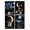 4 feuilles de papier à gratter noir phosphorescent