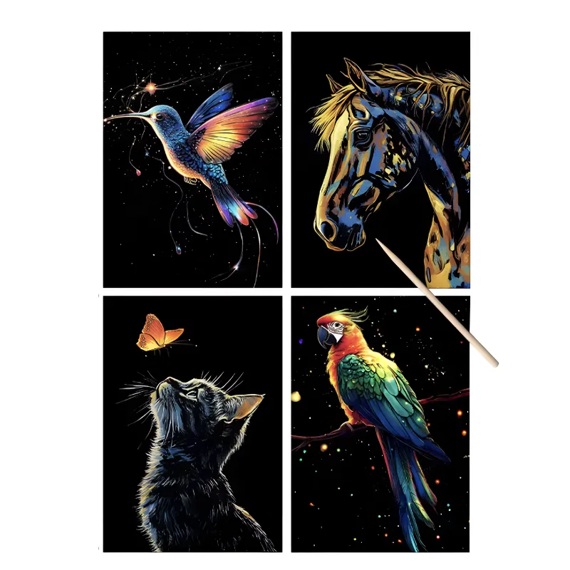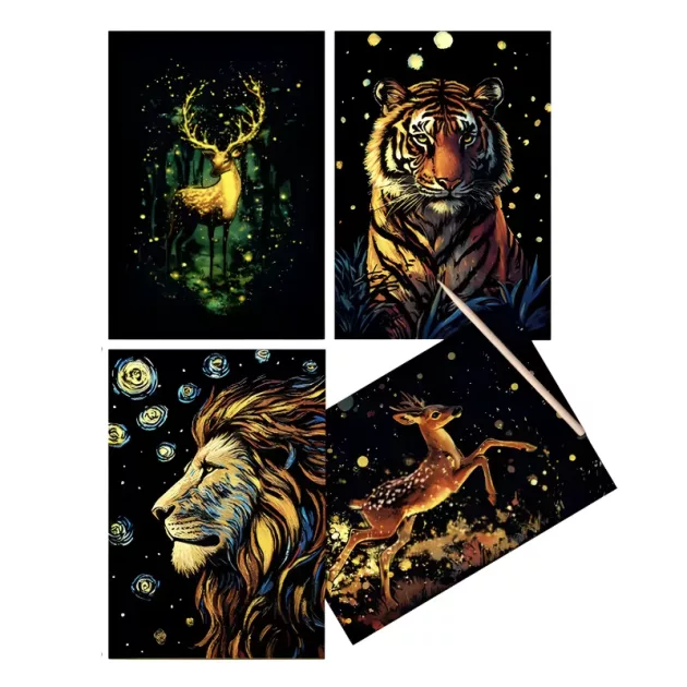 Mes enfants adorent ces feuilles à gratter ! Regarder les couleurs apparaître est vraiment génial et le soir, leur art lumineux est magique. Aucun désordre à nettoyer, un gros plus.