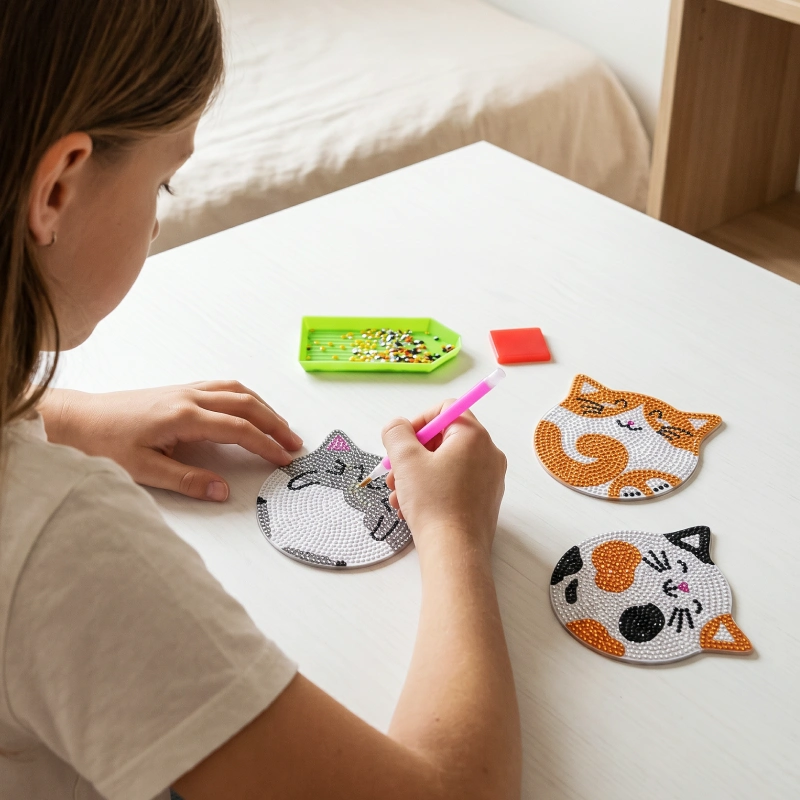 Regardez votre enfant briller en réalisant de magnifiques sous-verres en forme de chat. Chaque pièce offre un moment de jeu manuel amusant qui réduit le temps d’écran et renforce la confiance en soi. Des motifs uniques transforment n’importe quel espace de la maison avec une touche de gaieté étincelante. Ce kit offre une expérience gratifiante et un sentiment particulier de fierté.