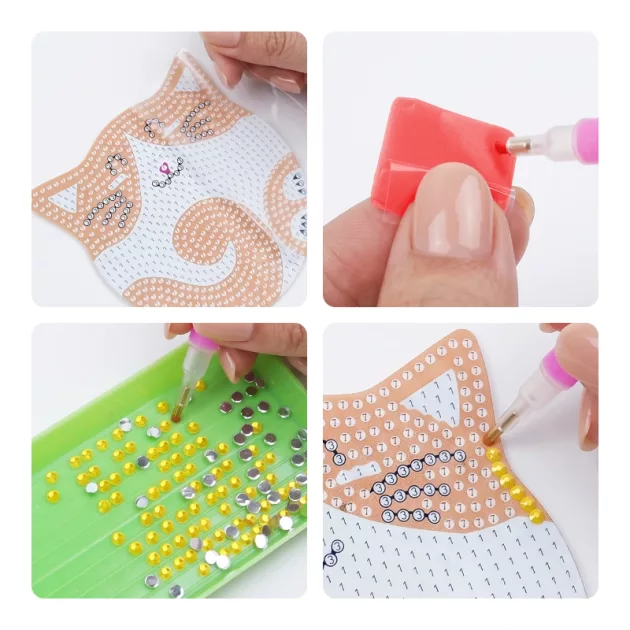 J’ai pris ce kit pour ma petite-fille. Elle a adoré choisir les couleurs et coller les strass. Les chats terminés sont adorables sur notre table basse.
