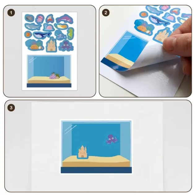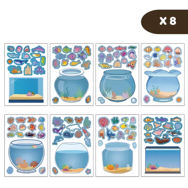 Transformez n'importe quel après-midi pluvieux en une aventure créative. Des autocollants aux couleurs vives font surgir la magie de l'océan. Chaque activité occupe les petites mains et stimule leur imagination. Profitez de moments de complicité et de rires pendant que votre enfant crée son aquarium de rêve.