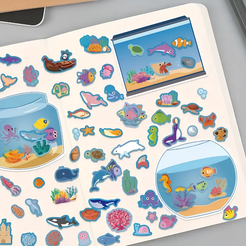 Transformez n'importe quel après-midi pluvieux en une aventure créative. Des autocollants aux couleurs vives font surgir la magie de l'océan. Chaque activité occupe les petites mains et stimule leur imagination. Profitez de moments de complicité et de rires pendant que votre enfant crée son aquarium de rêve.