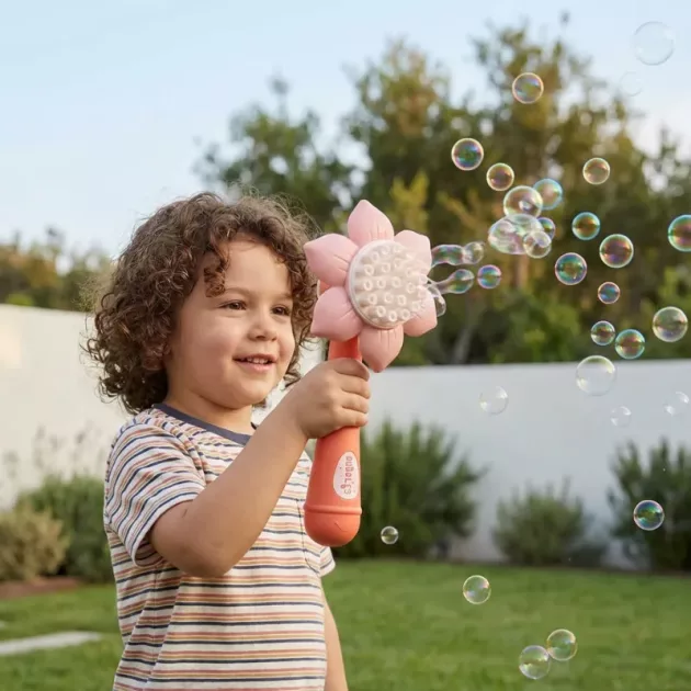 En tant que nounou, ce souffleur tournesol vit dans mon sac. Léger, facile à transporter, et chaque visite au parc se transforme en joyeuse chasse aux bulles.
