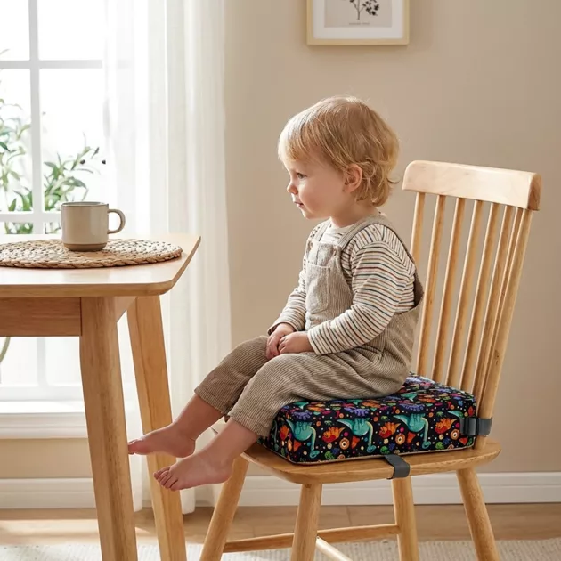 Enfin, un coussin qui reste en place ! Mon fils adore s’asseoir avec nous maintenant et sa nourriture ne se retrouve pas partout.
