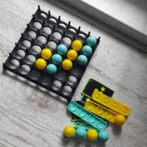 Ce jeu est assez amusant ! Il est beaucoup plus difficile que je ne le pensais. Vous piochez une carte et essayez de créer ce motif avec vos balles lorsque c’est votre tour. C’est assez simple mais cela peut être difficile ! C’est certainement un jeu qui vous divertira pendant un moment.