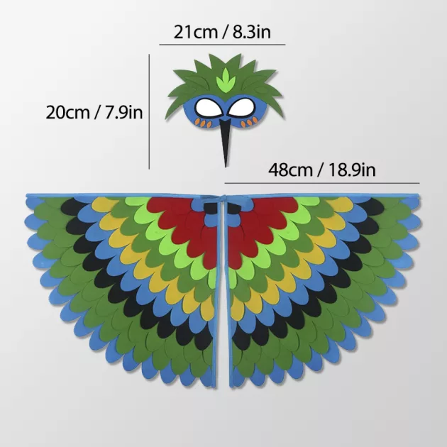 Vraiment léger et confortable pour jouer toute la journée. Mon enfant n’a pas eu trop chaud ni de démangeaisons en portant ces ailes et ce masque.