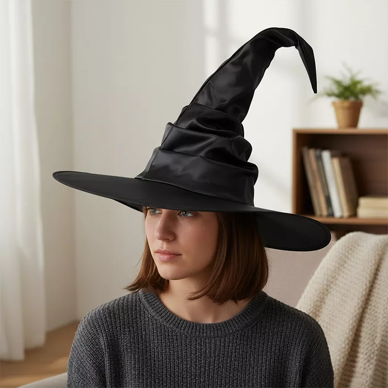 Ma petite sœur a porté ce chapeau de sorcière à une fête et ne voulait plus l’enlever de toute la nuit ! Elle a dit qu’il était super confortable et vraiment magique.