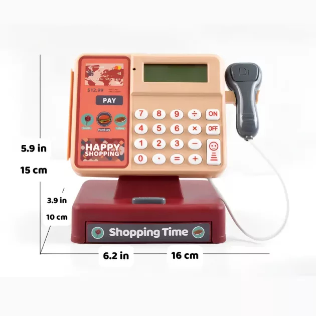 Caisse enregistreuse jouet avec calculatrice et scanner d’aliments pour enfants