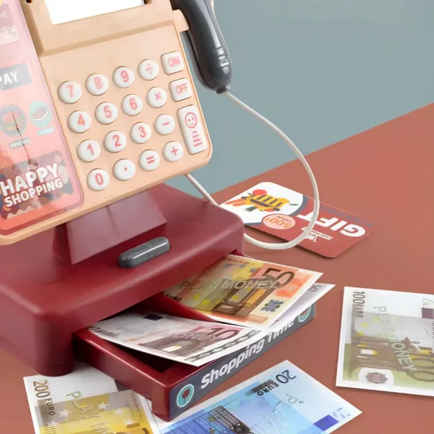 J’ai acheté cette caisse enregistreuse pour mon fils et maintenant il demande à jouer à la ’boutique’ tous les jours. Il s’entraîne à additionner et fait de faux tickets de caisse. Très créatif.