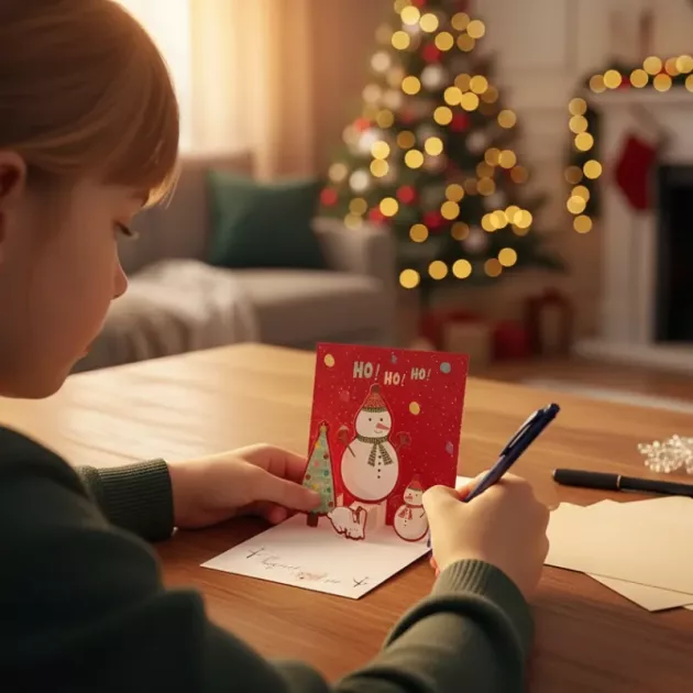 J’ai adoré voir ma fille écrire ses propres petits mots à ses amis. Le design pop-up était une belle surprise. Beaucoup de joie sous notre petit sapin.