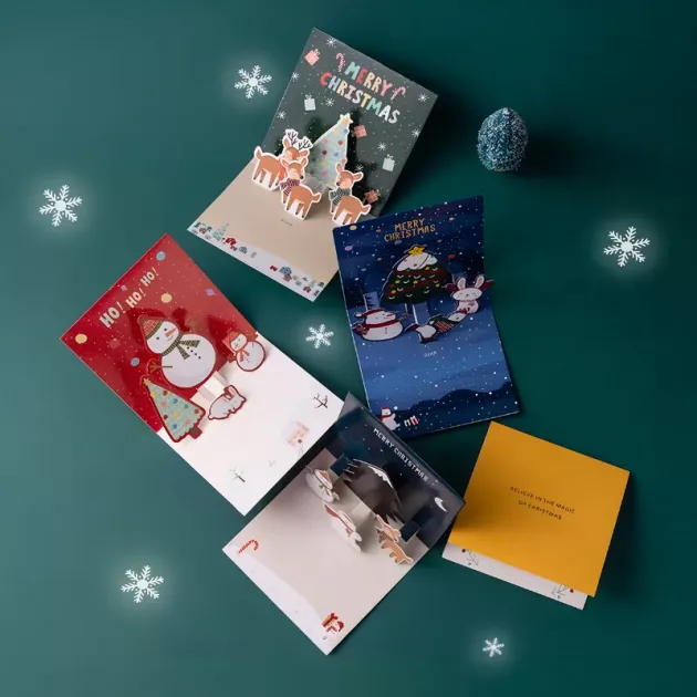Nous cherchons toujours quelque chose de créatif à Noël. Ces cartes ont réuni tout le monde autour de la table, à bricoler et à raconter des blagues. Le design 3D a rendu ça magique.