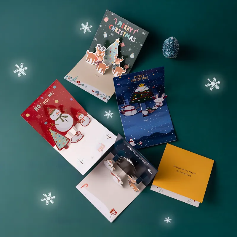 Illuminez la saison festive de votre famille avec des scènes 3D joyeuses. Chaque design unique permet aux enfants de partager leurs vœux de façon créative. Profitez d'une simple qui rassemble vos proches pour des moments inoubliables.