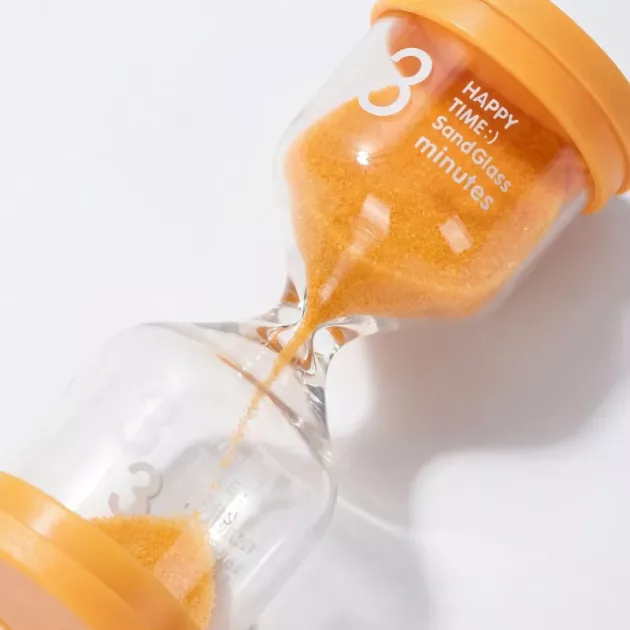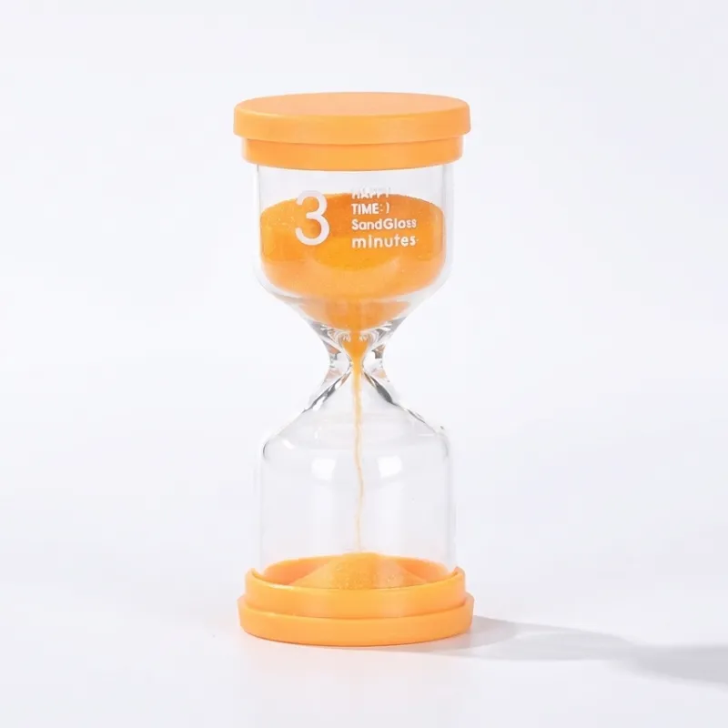 J’utilise ce sablier pendant le brossage de dents le soir. Les enfants regardent le sable au lieu de se plaindre, et ils se brossent assez longtemps sans que j’aie à compter.