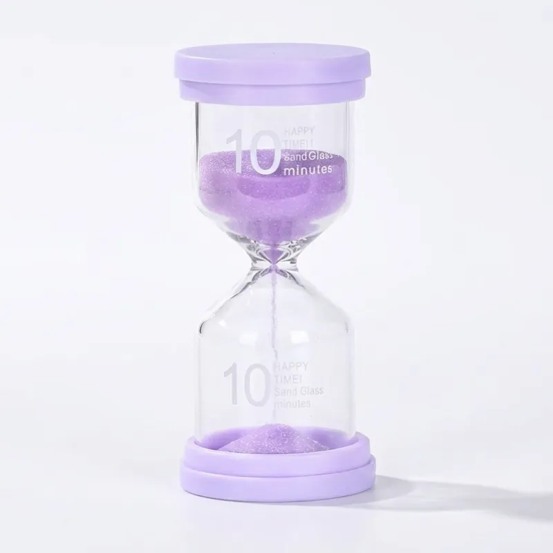 Nous utilisons le sablier pour des petites sessions de rangement rapide. Dix minutes semblaient interminables avant, mais regarder le sable coloré tomber garde les enfants motivés et de bonne humeur.