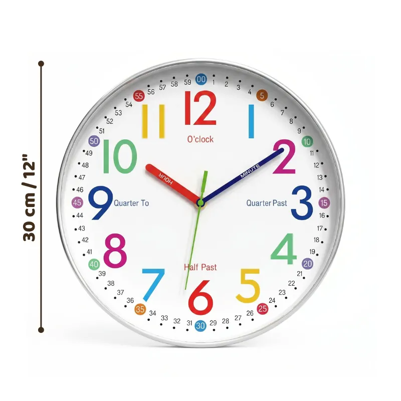 Je donne des cours à un petit groupe à la maison et cette horloge joyeuse a rendu l’explication de « et quart » et « et demie » beaucoup plus simple. Les enfants la regardent sans cesse pendant les leçons.