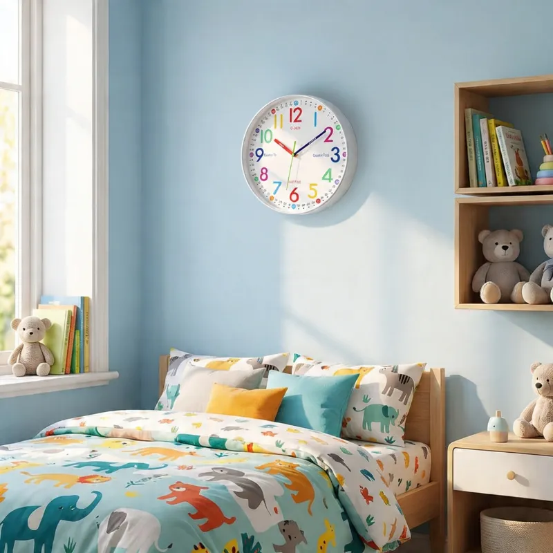 Je l’ai accrochée dans la salle de jeux et mes jumeaux ont commencé à lire l’heure en une semaine. Le léger tic-tac garde la pièce paisible après l’école.