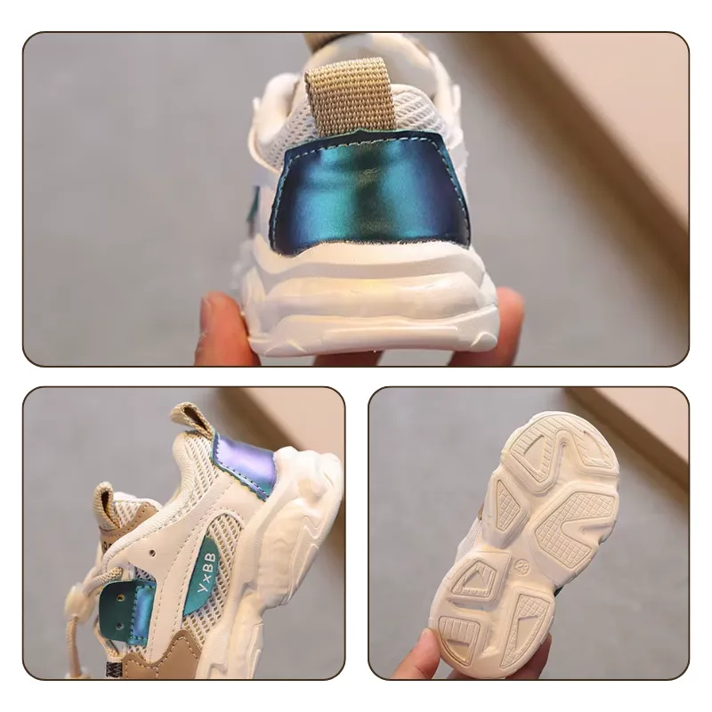 Chaque pas est tout en douceur grâce au design en maille aérée. L'adhérence fiable garde les petits pieds en sécurité sur un sol lisse ou rugueux. Les semelles flexibles se plient facilement, parfaites pour jouer avec énergie à l'intérieur comme à l'extérieur.