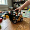 Le nouveau chariot élévateur est le préféré à la maison. Mon frère et moi chargeons tout ce qu’on trouve et le poussons partout dans la maison.