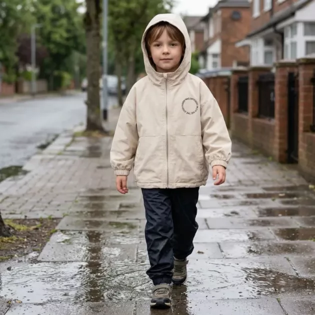 Protection contre les intempéries - L’eau perle et s’écoule, de sorte que les vêtements en dessous restent secs. Plus besoin de s’inquiéter des averses surprises pendant les moments de jeu.
