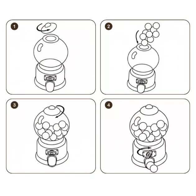 Mon petit frère ne se lasse pas de cette machine à boules de gomme ! Il adore tourner la manivelle et partager des friandises avec tout le monde. Nous la gardons sur notre table de cuisine.