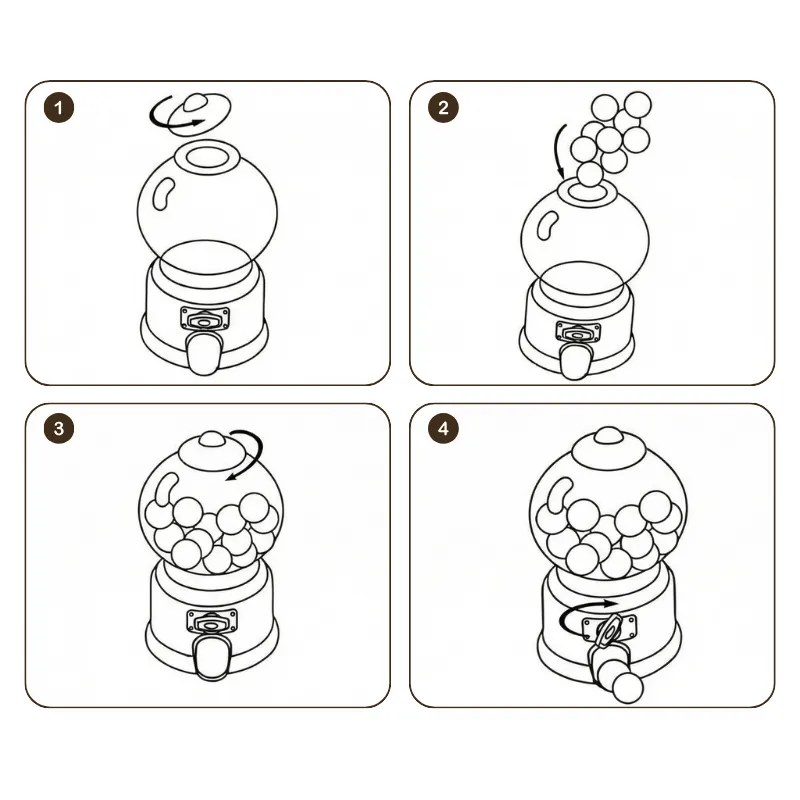 Ajouter cette machine à notre salle de jeux était une excellente idée. Je la remplis avec différents bonbons chaque semaine et mon frère pense que c’est magique.