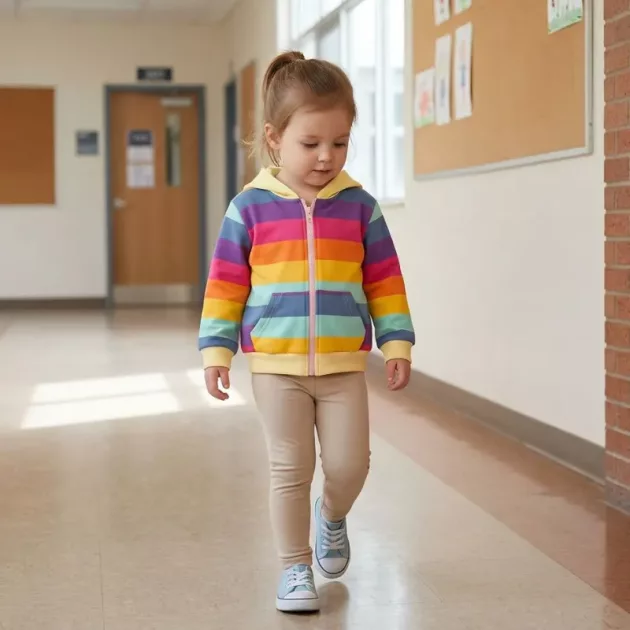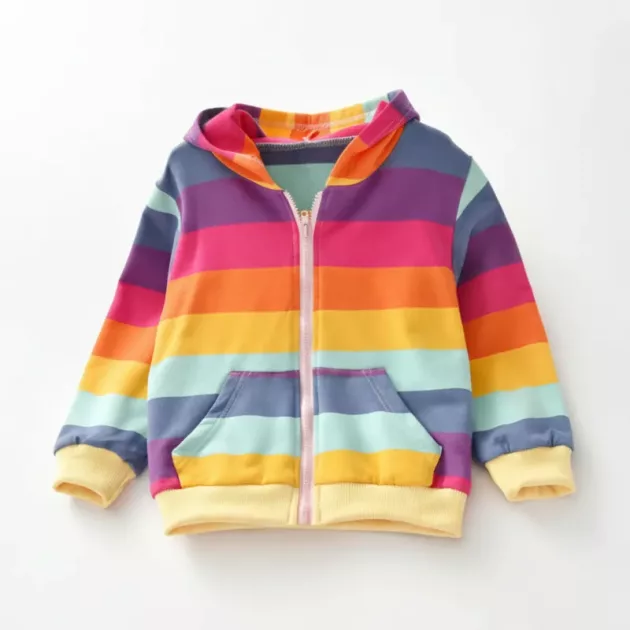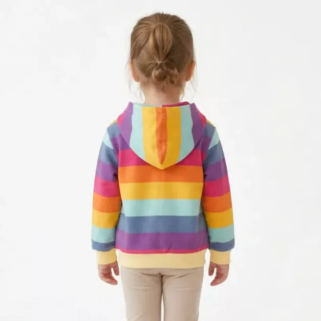 Mon enfant réclame ce hoodie chaque matin. Il est doux, léger, et les rayures arc-en-ciel rendent le moment de s’habiller vraiment amusant maintenant.