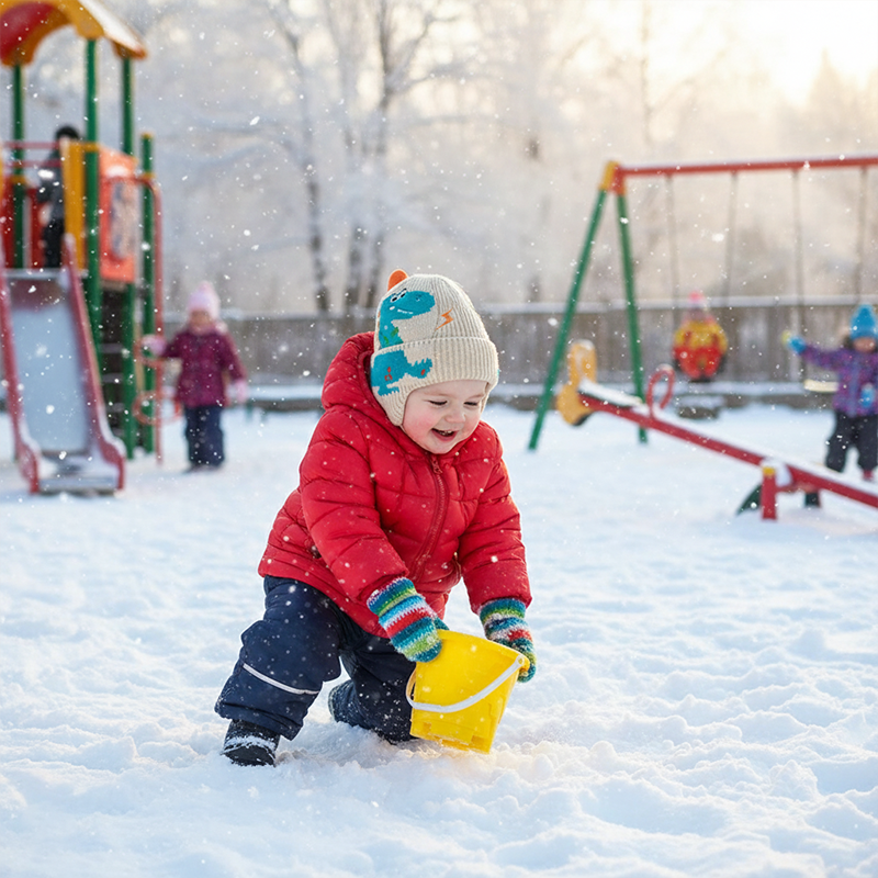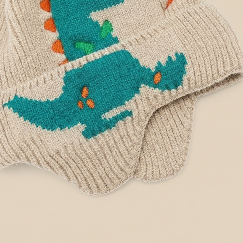 Ce bonnet dino est toujours son premier choix. Il est coloré, amusant, et ne glisse jamais sur sa tête. Il résiste bien aux lavages après les journées au parc boueux.