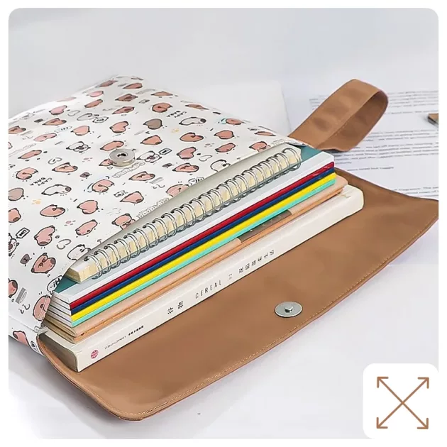 Ma fille adore les chats joyeux sur sa pochette ! Elle y range ses carnets à dessin et ses crayons facilement, et elle trouve tout tout de suite.