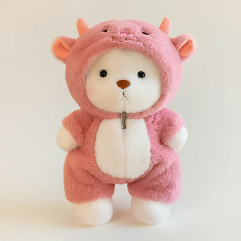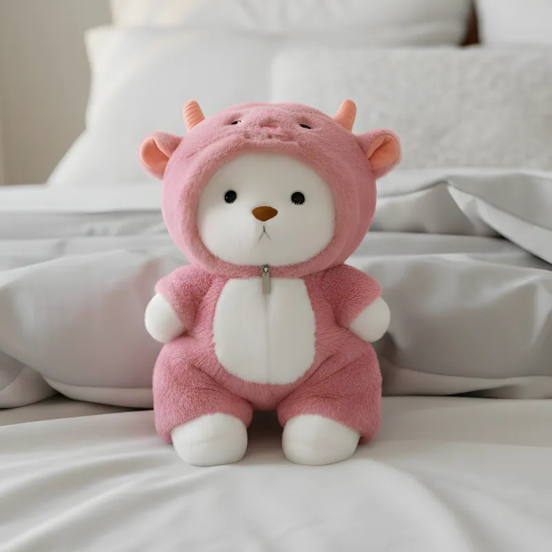 Ce charmant compagnon apporte chaleur et joie à la maison. Son adorable design avec capuche ajoute une touche ludique à chaque instant. Les enfants adorent ce compagnon pour les câlins, et les parents apprécient l'entretien facile.