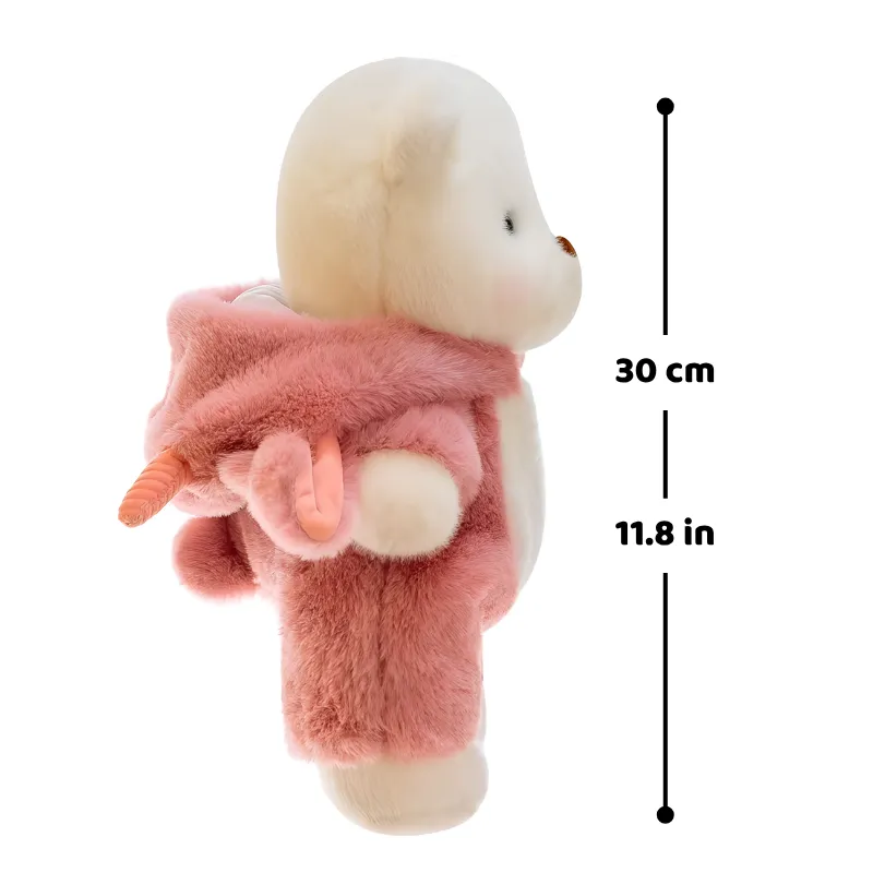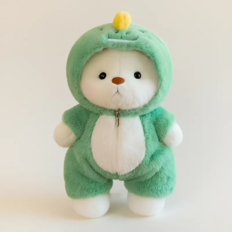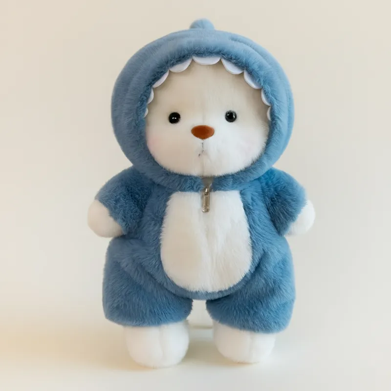 Quand je me sens triste, serrer mon ours avec la mignonne capuche m’aide. Il est très doux et a des couleurs vives. Changer sa tenue est mon activité préférée.