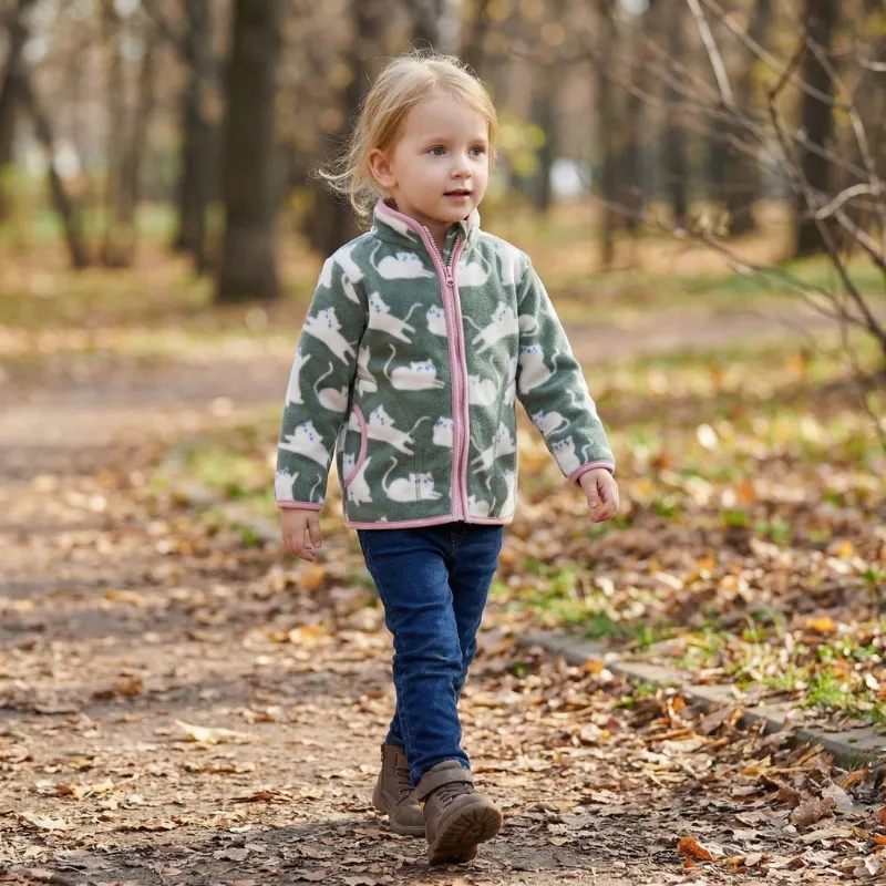 Les matins chargés sont plus simples quand l’habillage est rapide et facile. Cette veste en polaire zippée apporte une touche joyeuse à chaque sortie. Son tissu doux offre un confort idéal pour jouer, à l’intérieur comme à l’extérieur. Choisissez parmi des motifs amusants pour égayer n’importe quelle garde-robe.