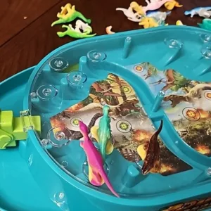 Ce jeu est excellent pour jouer à l’intérieur. Mes fils adorent l’aspect compétitif et essaient de faire tomber les dinosaures de l’autre. C’est un jeu bien construit avec des couleurs vives qui captent leur attention.