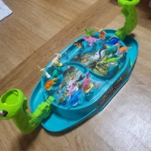 Ce jeu est fantastique pour mes petits amateurs de dinosaures. Il est facile à installer et les enfants peuvent y jouer de manière autonome. Ils adorent la compétition amicale et essaient de renverser les dinosaures des autres. Nous sommes très satisfaits !