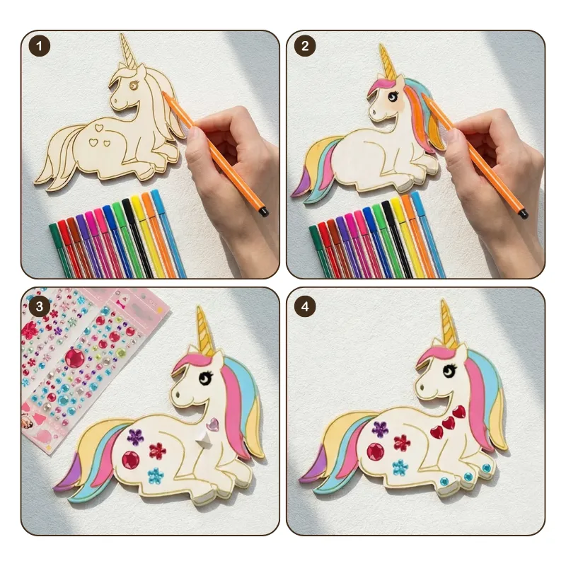 C’est génial ! Ma fille a fait preuve de beaucoup d’imagination et la licorne en bois est maintenant sur son étagère. Nettoyage facile aussi.