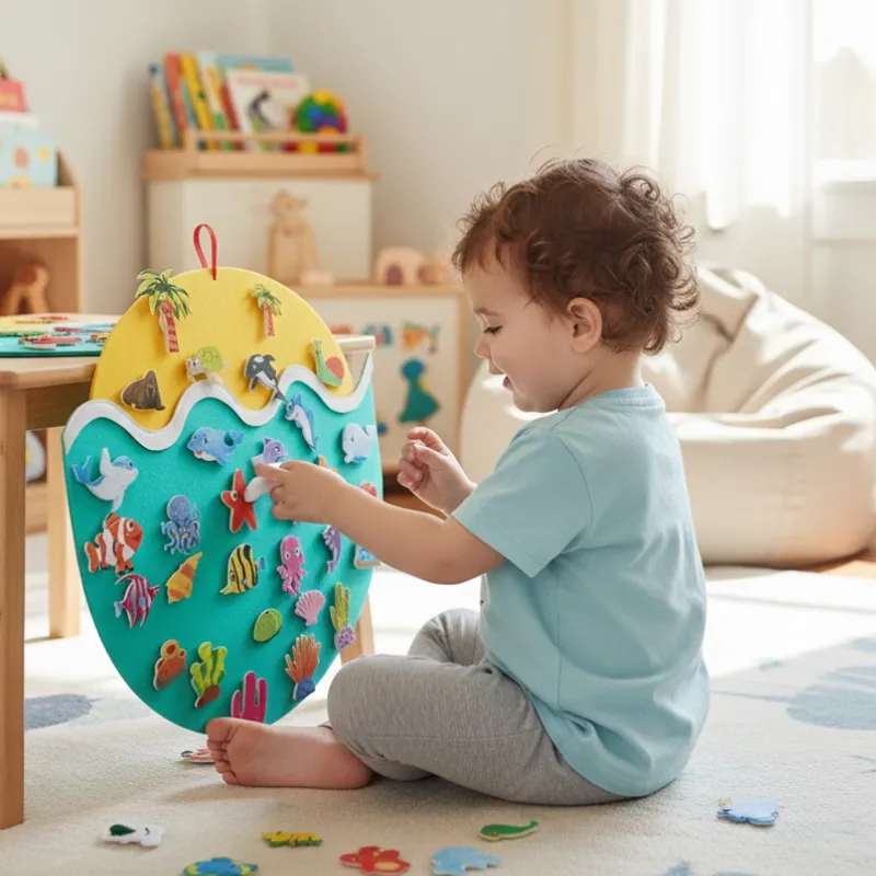 Les animaux colorés sont adorables, et les bandes Velcro sont parfaites pour les petites mains. On utilise ce coffret de jeu en feutrine tous les jours pendant le temps calme.