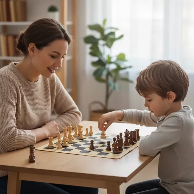 Parfait pour des parties rapides chez mamie. On le déroule en quelques secondes et tout le monde a son tour. Apprendre les échecs est bien plus amusant.