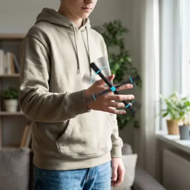Je me sens parfois agité, mais faire tourner ce stylo occupe mes mains. C’est parfait quand je m’ennuie ou que je dois rester assis sans bouger.