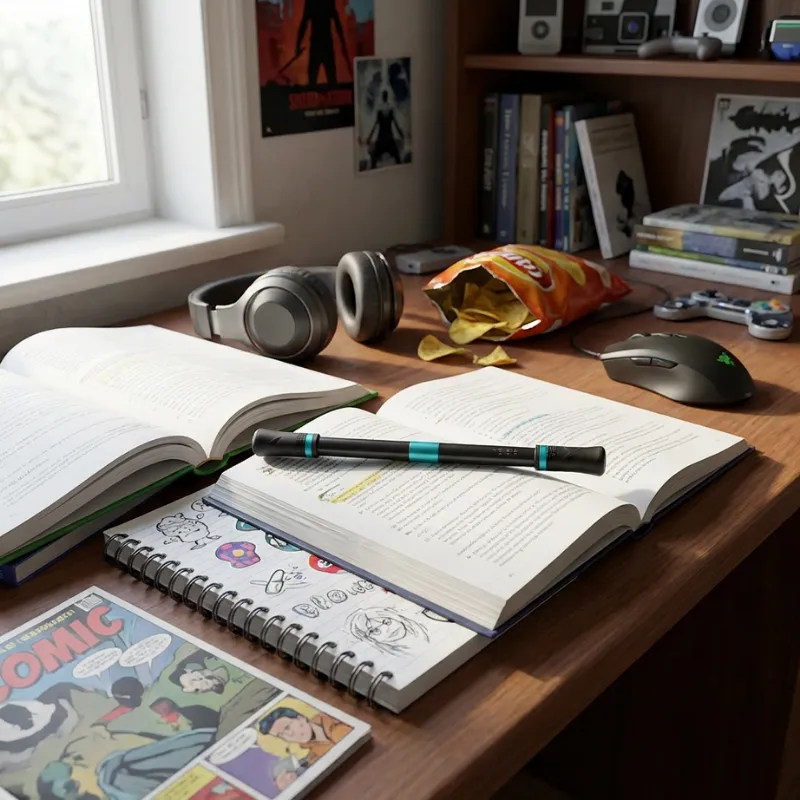 Quand je suis stressée avant les quiz, faire tourner ce stylo m’aide à rester calme. Il est parfait pour les endroits calmes, et mes parents aiment qu’il soit sûr.