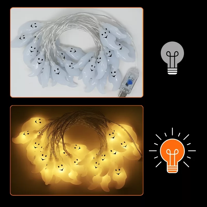 Illumine les Fêtes - Chaque fête devient encore plus spéciale avec ces joyeuses lumières fantomatiques. Leur douce lueur blanche crée une atmosphère magique pour toute la famille.