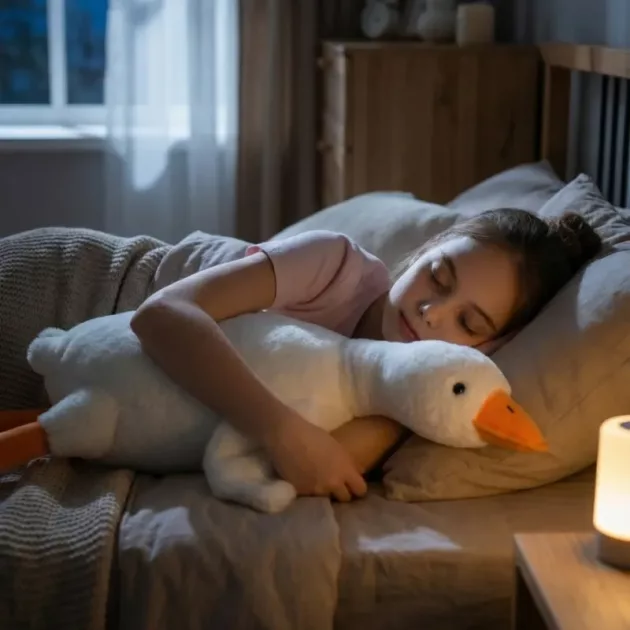 L’oie rend les moments dans la chambre spéciaux. Mon fils la traîne du canapé au lit et l’utilise comme oreiller presque tous les après-midis. Parfait pour les câlins et les histoires.