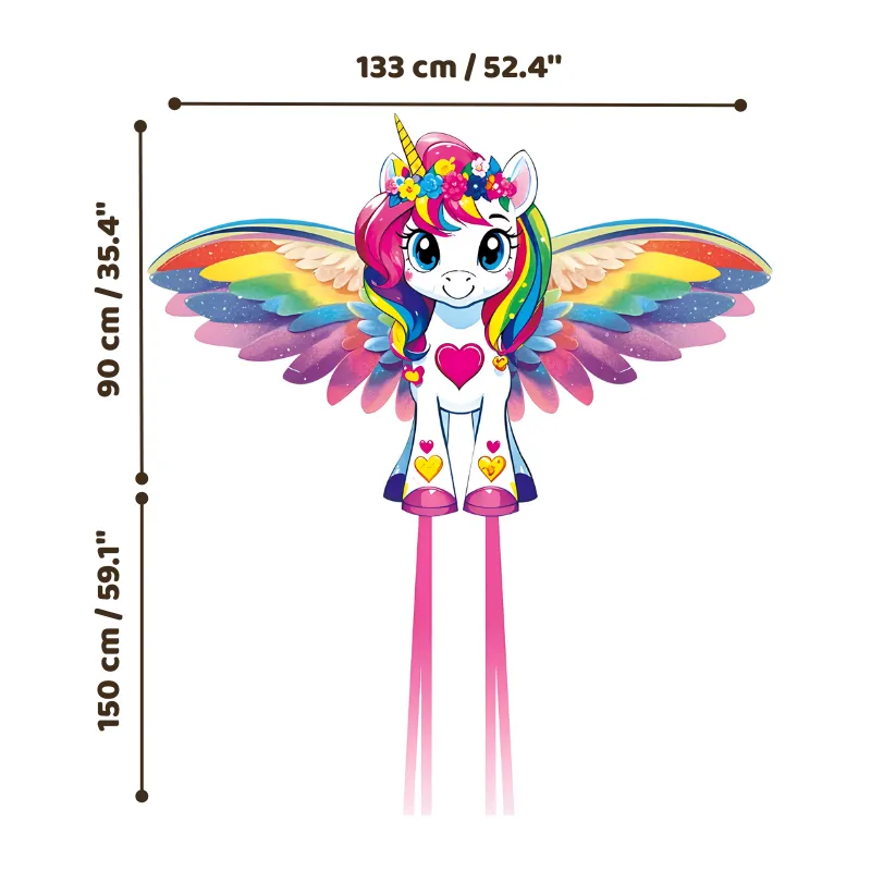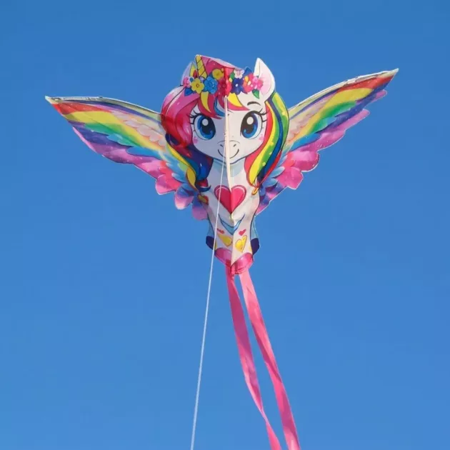 Grand cerf-volant licorne avec grandes ailes pour enfants