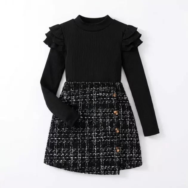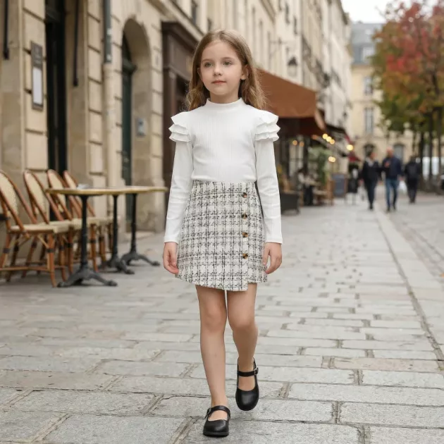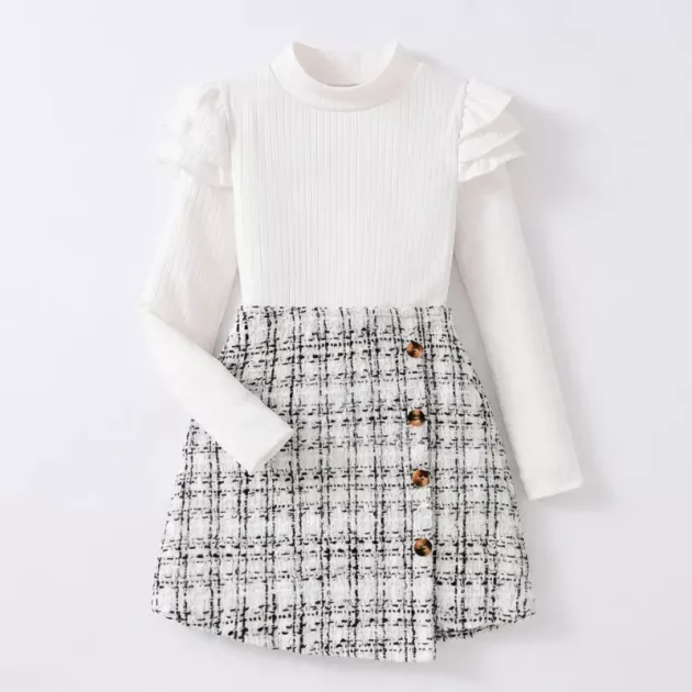 La jupe à carreaux a un look classique que j’adore, et la couleur reste après lavage. Ma fille aime bouger librement dans cet ensemble confortable.