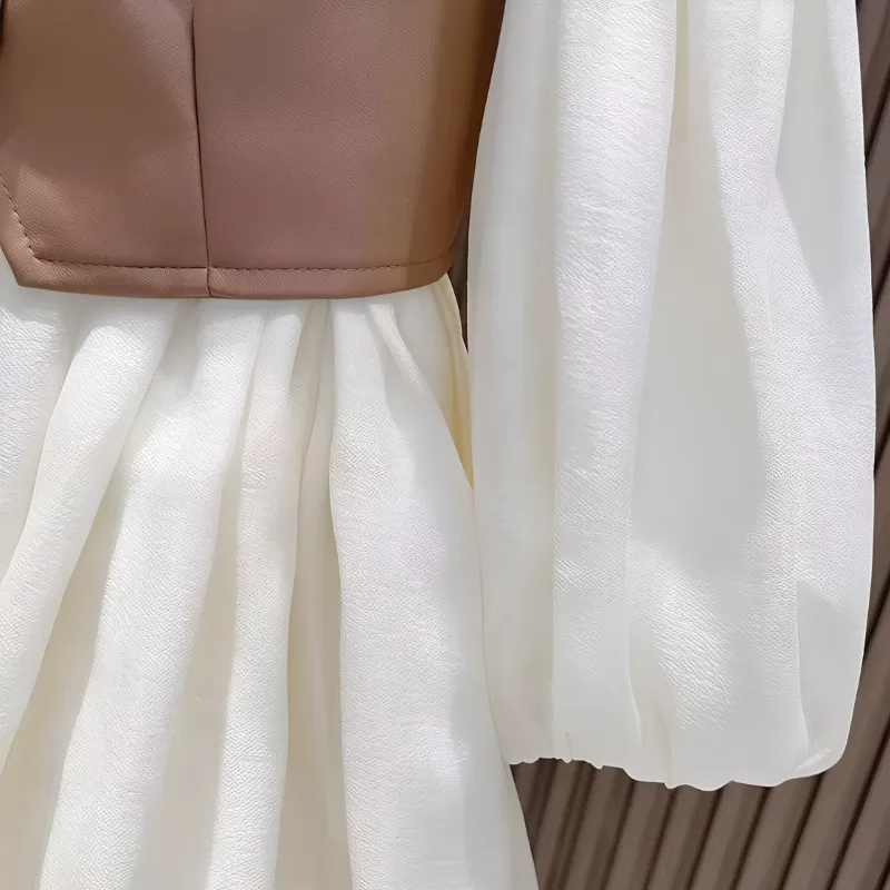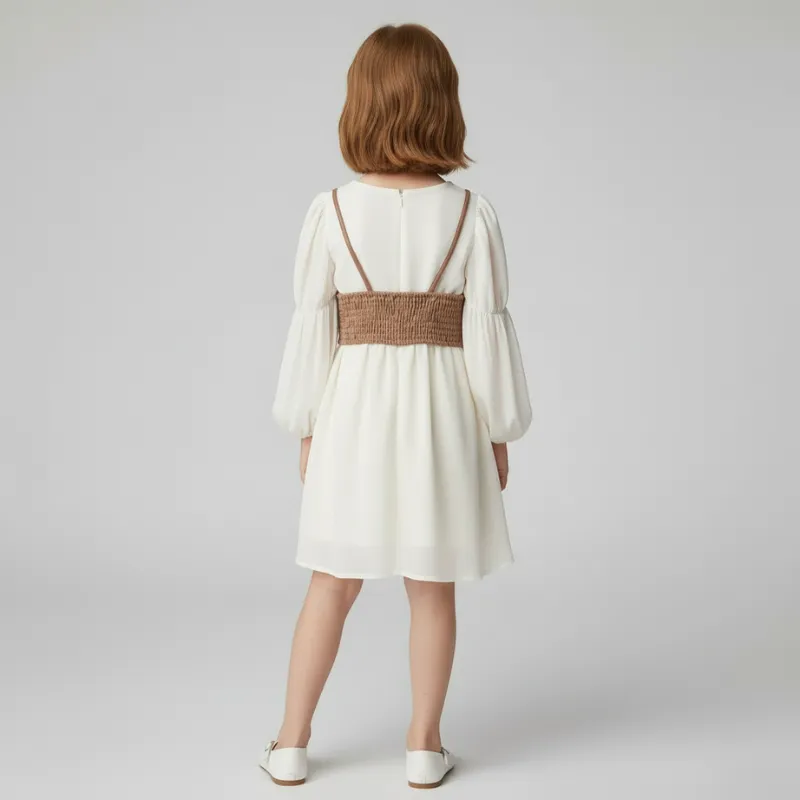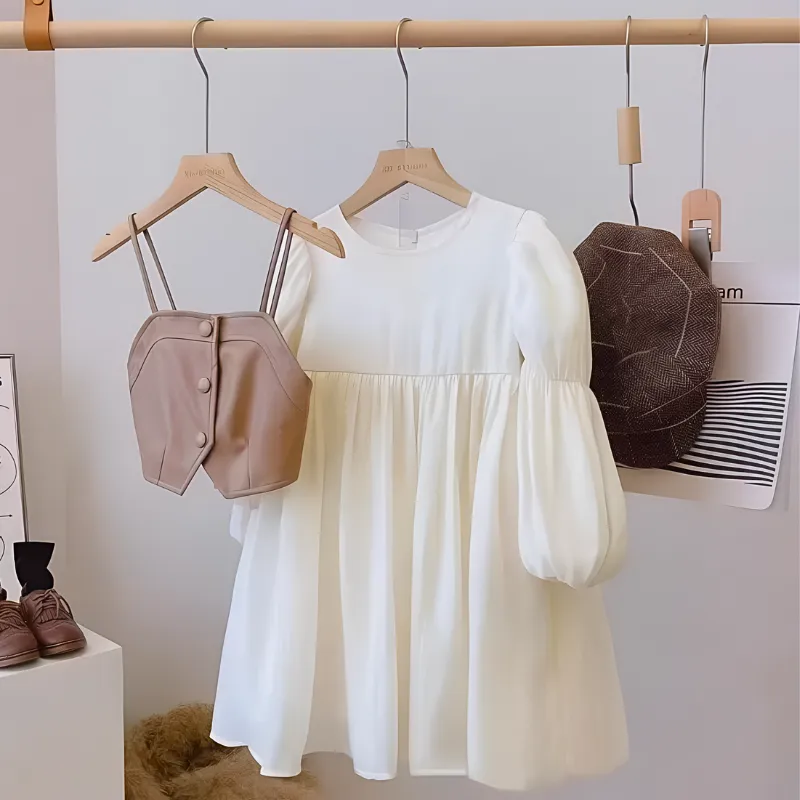 Adorable robe en coton à manches longues avec gilet pour enfants